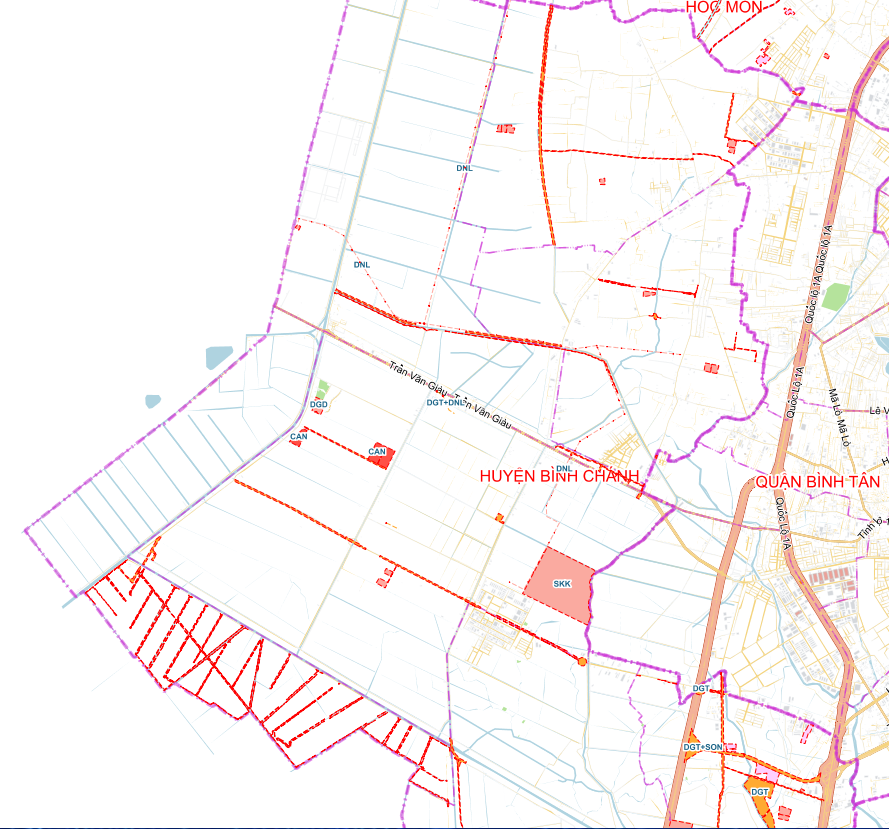 - Huyện Bình Chánh nằm về phía Tây của Thành phố, là một trong 5 huyện ngoại thành. Huyện có tổng diện tích tự nhiên là 25.255,99 ha, chiếm 12% diện tích toàn thành phố với 16 đơn vị hành chính cấp xã. - Kế hoạch sử dụng đất năm 2023 huyện Bình Chánh được xây dựng dựa trên nhu cầu sử dụng đất của các sở, ngành cấp tỉnh, các phòng, ban, ngành, các chủ đầu tư dự án, UBND các xã, thị trấn và của hộ gia đình, cá nhân nên đáp ứng kịp thời các mục tiêu phát triển kinh tế xã hội của huyện. Đồng thời có ý nghĩa quan trọng trong việc xác lập sự ổn định về mặt pháp lý của đất đai phục vụ cho công tác quản lý Nhà nước về đất đai, đây là căn cứ pháp lý để tiến hành thu hồi đất, giao đất theo luật định và là cơ sở để chuyển đổi mục đích sử dụng đất phù hợp với điều kiện của địa bàn. - Kế hoạch sử dụng đất 2023, huyện Bình Chánh có 116 công trình, dự án. Trong đó có 11 công trình, dự án mới và 105 công trình, dự án chuyển tiếp từ các năm trước (năm 2015: 14 dự án; năm 2016: 18 dự án; năm 2017: 16 dự án; năm 2018: 6 dự án; năm 2019: 31 dự án; năm 2020: 2 dự án và năm 2021: 11 dự án; năm 2022: 7 dự án) - Bản đồ Kế hoạch sử dụng đất năm 2023 huyện Bình Chánh được thu thập, chuẩn hóa và cung cấp dữ liệu qua dịch vụ Web theo tiêu chuẩn OGC WFS, WMTS, WMS.